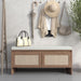 Storage Bench With Cushion, Shoe Cabinet With 2 Doors - Antique Natural / Rattan
