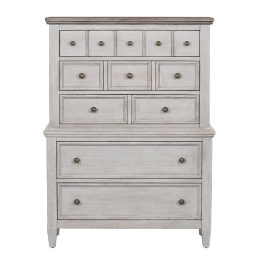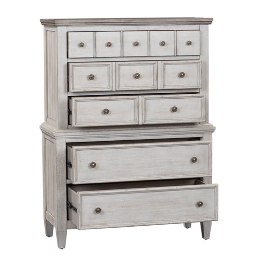 Enhance your room with the Allyson Park chest. Crafted with pine solids and veneers. This piece features felt lined top drawers, fully stained inte...
