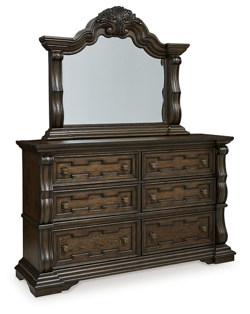 From the ornamental appliques to the large scale, this dresser and mirror make a bold statement. Spacious drawers store your clothes, jewelry and m...