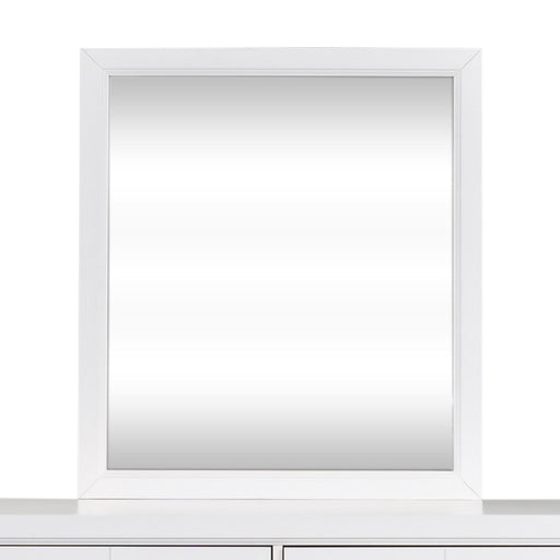 Complete your farmhouse look with this square mirror. Heavy distressing that is accented by the high/low veneer pattern that encompasses the bevele...