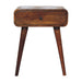 - Nightstand Solid Wood Avora with 1 drawer Artisan Furniture - Combining mid-century elegance with practical design, this bedside table is handcrafted from 100% Solid Mango Wood in a warm finish. Featuring a single drawer with a subtle knob for discreet storage, it rests on tapered Nordic-style legs that add a touch of retro charm. Perfectly sized for smaller spaces, this piece offers functionality and style, making it an ideal addition to bedrooms or living areas. Its handmade, sustainable craftsmanship and natural wood grain ensure that no two pieces are exactly alike, giving your home a unique and timeless accent.