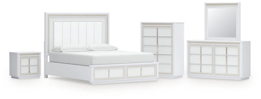 Feddinger California King Panel Bed with Mirrored Dresser, Chest and Nightstand