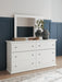 Details B139B42: Includes panel headboard/footboard and rails, Made with engineered wood (MDF/particleboard/plywood) and decorative laminate for the right balance of affordability and durability, Replicated solid white paint, Decorative laminate replicates natural or man-made material surfaces with consistent color, pattern and texture, Foundation/box spring required, sold separately, Mattress available, sold separately, Assembly required, B139B40: Includes dresser and mirror, Made of engineered wood (MDF/particleboard), Knobs with pewter-tone finish, Scalloped moulding, 6 smooth-operating drawers, Includes tipover restraint device, Mirror attaches to back of dresser; can also be mounted on wall horizontally or vertically, Safety is a top priority, clothing storage units are designed to meet the most current standard for stability, ASTM F 2057 (ASTM International), Drawers extend out to accommodate maximum access to drawer interior while maintaining safety,