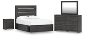 Hollivern Full Panel Bed with Storage with Mirrored Dresser and Nightstand