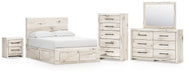 | Details | B2310B24: Includes panel headboard, storage footboard, 2 under bed storage units and roll slats , Made with engineered wood (MDF/particleboard/plywood) and decorative laminate for the right balance of affordability and durability, Rustic white finish over replicated reclaimed oak grain with authentic touch, Decorative laminate replicates natural or man-made material surfaces with consistent color, pattern and texture, 6 smooth-gliding storage drawers, Drawer interiors are lined with a faux linen laminate for a clean, finished look, Bed does not require additional foundation/box spring; accommodates most zero clearance adjustable bases with the addition of a bunkie board , Mattress available, sold separately, Minor assembly required, B2310B1: Made with engineered wood (MDF/particleboard/plywood) and decorative laminate for the right balance of affordability and durability, Rustic white finish over replicated reclaimed oak grain with authentic touch, Decorative laminate replicates natural or man-made material surfaces with consistent color, pattern and texture, Handles with dark pewter-tone finish, 6 smooth-gliding drawers, Drawer interiors are lined with a faux linen laminate for a clean, finished look, Framed front and pilasters, Safety is a top priority, clothing storage units are designed to meet the most current standard for stability, ASTM F 2057 (ASTM International), Drawers extend out to accommodate maximum access to drawer interior while maintaining safety, Mirror attaches to back of dresser; can also be mounted on wall horizontally or vertically , Minor assembly required, B2310-46: Made with engineered wood (MDF/particleboard/plywood) and decorative laminate for the right balance of affordability and durability, Rustic white finish over replicated reclaimed oak grain with authentic touch, Decorative laminate replicates natural or man-made material surfaces with consistent color, pattern and texture, Handles with dark pewter-tone finish, 5 smooth-gliding drawers, Drawer interiors are lined with a faux linen laminate for a clean, finished look, Framed front and pilasters, Safety is a top priority, clothing storage units are designed to meet the most current standard for stability, ASTM F 2057 (ASTM International), Drawers extend out to accommodate maximum access to drawer interior while maintaining safety, Minor assembly required, B2310-92: Made with engineered wood (MDF/particleboard/plywood) and decorative laminate for the right balance of affordability and durability, Rustic white finish over replicated reclaimed oak grain with authentic touch, Decorative laminate replicates natural or man-made material surfaces with consistent color, pattern and texture, Handles with dark pewter-tone finish, 2 smooth-gliding drawers, Drawer interiors are lined with a faux linen laminate for a clean, finished look, Framed front and pilasters, 2 slim-profile USB charging ports, Power cord included; UL Listed, Minor assembly required, | |