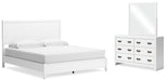 Details B427B8: Includes king panel headboard, footboard, rails and slats, Made with hardwood solids, okoume veneer and MDF substrates, White finish, Foundation/box spring required, sold separately, Mattress available, sold separately, Assembly required, B427B1: Includes dresser and mirror, Made with hardwood solids, okoume veneer and MDF substrates, White finish, 6 drawers with dovetail construction and metal center guides, Hardware with dark finish, Drawer interiors are lined with a wood grain laminate for a clean, finished look, Mirror attaches to back of dresser,