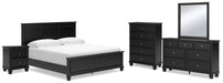 Lanolee King Panel Bed with Mirrored Dresser, Chest and Nightstand