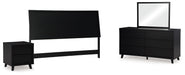Details B1013-58: Made with engineered wood (MDF/particleboard/plywood) and decorative laminate for the right balance of affordability and durability, Matte black finish with subtle replicated wood grain, Decorative laminate replicates natural or man-made material surfaces with consistent color, pattern and texture, ¼" bolts (not included) are needed to attach headboard to your existing bed frame, Minor assembly required, B1013B11: Includes dresser and mirror, Made with engineered wood (MDF/particleboard/plywood) and decorative laminate for the right balance of affordability and durability, Matte black finish with subtle replicated wood grain, Decorative laminate replicates natural or man-made material surfaces with consistent color, pattern and texture, 6 smooth-gliding drawers, Drawer interiors are lined with a faux linen laminate for a clean, finished look, Integrated drawer pulls, Framed front and pilasters, Mirror attaches to back of dresser; can also be mounted on wall horizontally or vertically, Safety is a top priority, clothing storage units are designed to meet the most current standard for stability, ASTM F 2057 (ASTM International), Drawers extend out to accommodate maximum access to drawer interior while maintaining safety, Minor assembly required, B1013-92: Made with engineered wood (MDF/particleboard/plywood) and decorative laminate for the right balance of affordability and durability, Matte black finish with subtle replicated wood grain, Decorative laminate replicates natural or man-made material surfaces with consistent color, pattern and texture, 2 smooth-gliding drawers, Drawer interiors are lined with a faux linen laminate for a clean, finished look, Integrated drawer pulls, Framed front and pilasters, USB and wireless charging options, Power cord included; UL Listed, Minor assembly required,