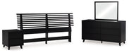 | Details | B1013-158: Made with engineered wood (MDF/particleboard/plywood) and decorative laminate for the right balance of affordability and durability, Matte black finish with subtle replicated wood grain, Decorative laminate replicates natural or man-made material surfaces with consistent color, pattern and texture, ¼" bolts (not included) are needed to attach headboard to your existing bed frame, Minor assembly required, B1013B11: Includes dresser and mirror, Made with engineered wood (MDF/particleboard/plywood) and decorative laminate for the right balance of affordability and durability, Matte black finish with subtle replicated wood grain, Decorative laminate replicates natural or man-made material surfaces with consistent color, pattern and texture, 6 smooth-gliding drawers, Drawer interiors are lined with a faux linen laminate for a clean, finished look, Integrated drawer pulls, Framed front and pilasters, Mirror attaches to back of dresser; can also be mounted on wall horizontally or vertically, Safety is a top priority, clothing storage units are designed to meet the most current standard for stability, ASTM F 2057 (ASTM International), Drawers extend out to accommodate maximum access to drawer interior while maintaining safety, Minor assembly required, B1013-92: Made with engineered wood (MDF/particleboard/plywood) and decorative laminate for the right balance of affordability and durability, Matte black finish with subtle replicated wood grain, Decorative laminate replicates natural or man-made material surfaces with consistent color, pattern and texture, 2 smooth-gliding drawers, Drawer interiors are lined with a faux linen laminate for a clean, finished look, Integrated drawer pulls, Framed front and pilasters, USB and wireless charging options, Power cord included; UL Listed, Minor assembly required, | |