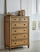 Taking a timeless approach to bedroom beauty, this bedroom package brings easygoing elegance to the everyday. With its light brown wood tone, it seamlessly slips into your room’s aesthetic. Dark bronze-tone pulls accent the assorted storage drawers, adding to this set's fresh approach to transitional stylings.