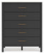 Details B2616B8: Includes upholstered panel headboard, panel footboard with rails and roll slats, Made with engineered wood (MDF/particleboard/plywood) and decorative laminate for the right balance of affordability and durability, Matte black finish with subtle replicated wood grain, Decorative laminate replicates natural or man-made material surfaces with consistent color, pattern and texture , Polyester upholstery, Bed does not require additional foundation/box spring; accommodates most zero clearance adjustable bases, Mattress available, sold separately, Assembly required, B2616B1: Includes dresser and mirror, Made with engineered wood (MDF/particleboard/plywood) and decorative laminate for the right balance of affordability and durability, Matte black finish with subtle replicated wood grain, Replicated white marble top, Decorative laminate replicates natural or man-made material surfaces with consistent color, pattern and texture , Handles with light bronze-tone finish, 6 smooth-gliding drawers , Drawer interiors are lined with a faux linen laminate for a clean, finished look, Mirror attaches to back of dresser; can also be mounted on wall horizontally or vertically, Safety is a top priority, clothing storage units are designed to meet the most current standard for stability, ASTM F 2057 (ASTM International), Drawers extend out to accommodate maximum access to drawer interior while maintaining safety, Minor assembly required, B2616-345: Made with engineered wood (MDF/particleboard/plywood) and decorative laminate for the right balance of affordability and durability, Matte black finish with subtle replicated wood grain, Replicated white marble top, Decorative laminate replicates natural or man-made material surfaces with consistent color, pattern and texture, Handles with light bronze-tone finish, 5 smooth-gliding drawers, Drawer interiors are lined with a faux linen laminate for a clean, finished look, Safety is a top priority, clothing storage units are designed to meet the most current standard for stability, ASTM F 2057 (ASTM International), Drawers extend out to accommodate maximum access to drawer interior while maintaining safety, Minor assembly required, B2616-91: Made with engineered wood (MDF/particleboard/plywood) and decorative laminate for the right balance of affordability and durability, Matte black finish with subtle replicated wood grain, Replicated white marble top, Decorative laminate replicates natural or man-made material surfaces with consistent color, pattern and texture, Handles with light bronze-tone finish, 1 smooth-gliding drawer, Drawer interior is lined with a faux linen laminate for a clean, finished look, Open shelf, USB and Qi wireless charging options, Ambient lighting under the top, Power cord included; UL Listed, Minor assembly required,