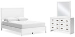 Details B427B6: Includes queen panel headboard, footboard, rails and slats, Made with hardwood solids, okoume veneer and MDF substrates, White finish, Foundation/box spring required, sold separately, Mattress available, sold separately, Assembly required, B427B1: Includes dresser and mirror, Made with hardwood solids, okoume veneer and MDF substrates, White finish, 6 drawers with dovetail construction and metal center guides, Hardware with dark finish, Drawer interiors are lined with a wood grain laminate for a clean, finished look, Mirror attaches to back of dresser,