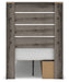 Details PCB2405B18: Includes panel headboard/footboard, rails with side storage and roll slats, Made with engineered wood (MDF/particleboard/plywood) and decorative laminate for the right balance of affordability and durability , Weathered gray finish over replicated oak grain, Decorative laminate replicates natural or man-made material surfaces with consistent color, pattern and texture, 2 smooth-gliding drawers, 2 storage cubbies, Bed does not require additional foundation/box spring; accommodates most zero clearance adjustable bases with the addition of a bunkie board, Mattress available, sold separately, Minor assembly required, PCB2405B1: Includes dresser and mirror, Made with engineered wood (MDF/particleboard/plywood) and decorative laminate for the right balance of affordability and durability , Weathered gray finish over replicated oak grain, Decorative laminate replicates natural or man-made material surfaces with consistent color, pattern and texture, Large-scale dark colored handles, 6 smooth-gliding drawers, Drawer interiors are lined with a faux linen laminate for a clean, finished look , Safety is a top priority, clothing storage units are designed to meet the most current standard for stability, ASTM F 2057 (ASTM International), Drawers extend out to accommodate maximum access to drawer interior while maintaining safety, Mirror attaches to back of dresser; can also be mounted on wall horizontally or vertically , Minor assembly required,