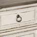 Blending of European traditional design influences makes Abbey Park a truly unique style for any living space. Warm antique finishes and artistic distressing along with grand scale makes Abbey Park a group to be passed to generations. The antique white finish with heavy chipping combines with the weathered brown white wash tops for a truly unique look. Bail and drop ring hardware in antique pewter add the finishing touch to the cases.