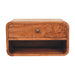 • Curve Upper Slot Floating Bedside - The bigger brother to our original Floating Curve Open Slot Bedside, this minimalistic wall-mounted unit has been constructed from 100% solid mango wood in a finish and features 1 drawer with a shiny knob along with 1 open shelf for storing any bits and pieces you wish to keep close by before bedtime. It's neat and clean design can easily be mounted on the wall without the fuss of any legs. Caution! Do not sit on the unit.