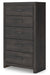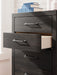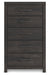 | Details | Made with engineered wood (MDF/particleboard/plywood) and decorative laminate for the right balance of affordability and durability, Charcoal finish over replicated oak grain with authentic touch, Decorative laminate replicates natural or man-made material surfaces with consistent color, pattern and texture, Large-scale dark colored handles, 5 smooth-gliding drawers, Drawer interiors are lined with a faux linen laminate for a clean, finished look, Safety is a top priority, clothing storage units are designed to meet the most current standard for stability, ASTM F 2057 (ASTM International), Drawers extend out to accommodate maximum access to drawer interior while maintaining safety, Minor assembly required | |