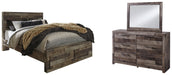 Derekson Queen Panel Bed with 2 Storage Drawers with Mirrored Dresser