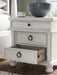| Details | Made with hardwood solids, veneers and MDF substrates, Rubbed antiqued white finish, Metal hardware with pewter-tone finish, 3 smooth-gliding drawers with fully finished interiors, French/English dovetail construction and heavy-duty ball-bearing side glides, Top drawer felt lined, 110V power supply with USB-A and USB-C charging ports, Power cord included; UL listed | |