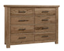 MADE IN USA - Vaughan Bassett - All produced and stocked in Galax, VA; by approximately 600 skilled craftsmen and craftswomen. Collection: Yellowstone - This collection takes rustic furniture to the next level. It is produced from White Oak Solids and Solid White Oak Veneer. Vaughan Bassett has develped a process that allows them to accelerate how wood ages and thus gives a very natural reclaimed wood appearance. They have also incorporated the American Dovetail Joint; which joins the bed posts to the headboard and footboard. This versatile collection has two outstanding beds in both Queen and King sizes. Both beds are also available with Footboard Storage. The signature bed is the American Dovetail bed. There are three terrific finishes; Dapple Gray, Chestnut Natural and a Two Tone (White and Buck Skin). Lastly, through an innovative program with the Virginia Department of Forestry, Vaughan Bassett replaces every tree used to produce its furniture. Over the last 15 or so years; 2 million trees have been planted.