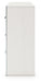 | Details | Made with engineered wood (MDF/particleboard/plywood) and decorative laminate for the right balance of affordability and durability, Matte white finish with subtle replicated wood grain, Decorative laminate replicates natural or man-made material surfaces with consistent color, pattern and texture, Chrome-tone accents, Large-scale chrome-tone handles with faceted details, 6 smooth-gliding drawers, Drawer interiors are lined with a faux linen laminate for a clean, finished look, Safety is a top priority, clothing storage units are designed to meet the most current standard for stability, ASTM F 2057 (ASTM International), Drawers extend out to accommodate maximum access to drawer interior while maintaining safety, Minor assembly required | |