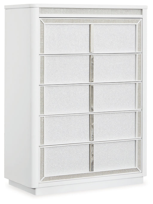 Transform your bedroom with this chest of drawers. Its modern design and glamorous details create a sophisticated retreat. The built-in LED lightin...