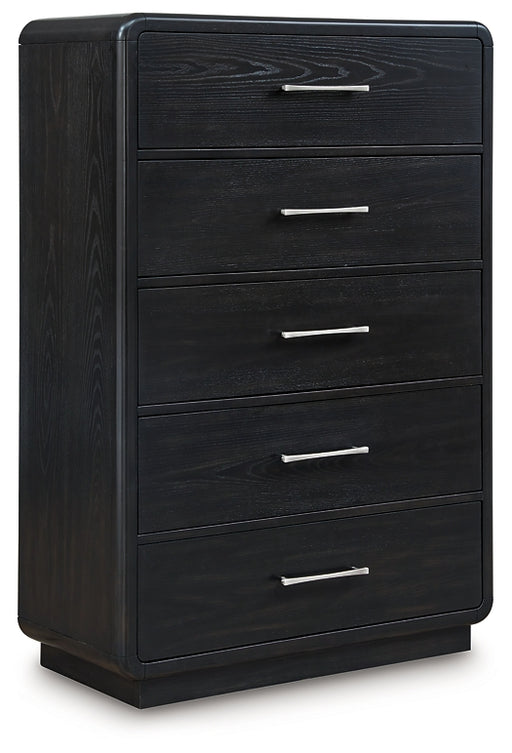 Add homespun charm to your restful retreat. A modern take on a timeless silhouette, this chest of drawers pairs a dark slate blue finish with a lig...