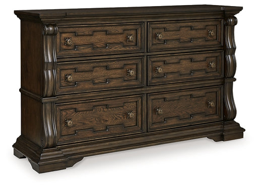 From its ornamental appliques to its large scale, this dresser makes a bold statement. Spacious drawers store your clothes, jewelry and more in stu...