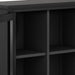 - Features two sliding tempered glass doors that open to a cabinet with two adjustable shelves