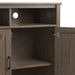 - Features two doors leading to large storage compartment with two adjustable shelves and two open top cubbies with cord management cut-outs for easy installation of TV and media components