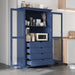 Kitchen Pantry, Freestanding Kitchen Storage Cabinet Display Cabinet With Glass Doors And 4 Built In Drawers For Living Room, Home Office - Blue