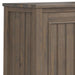 - Transitional design includes grooved detail on front doors, sides, brushed bronze handles, square tapered legs and square edged table top