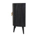- Features: 100% solid mango wood,ash-black finish,Nordic-style legs,gold t-bar handles,generous space,3 shelves leading to 6 slots