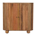 - Artisan Furniture Solid Wood Soba Ball Cabinet - This beautiful Soba Ball Cabinet has been constructed from 100% solid mango wood and has a lovely natural oak-ish finish. It has shelves for storage space, shiny brass knobs on the doors and 4 sturdy ball feet for a modern touch. Make full use of this piece in your living room by letting it store all your belongings while providing charm.