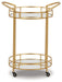 Add a bright spot to your contemporary space with this bar cart. Its beautifully bold blend of goldtone metal and mirrored glass heightens your home's modern aesthetic. It’s a striking choice for your kitchen or entryway, with locking casters allowing you to serve in style whenever and wherever it's needed.