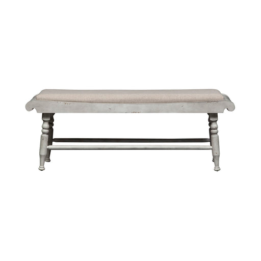 The Robbinsdale dining bench is sure to impress come mealtime. With its antiqued white finish and light gray upholstery with nailhead trim, modern ...