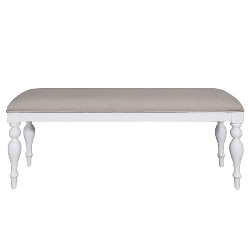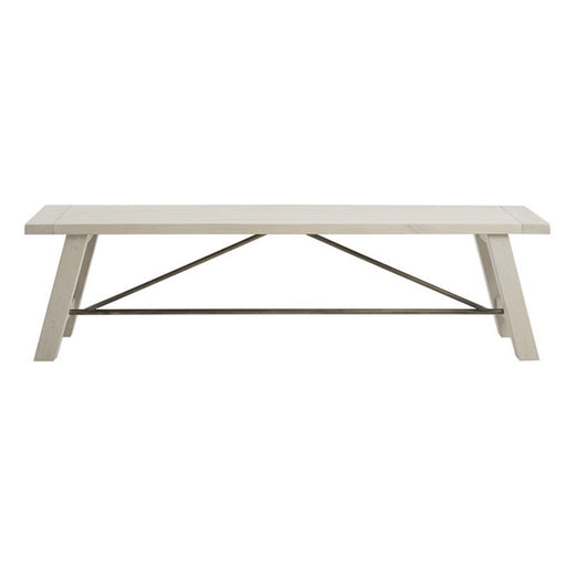 Sit in comfort and style with the Summer House bench. Crafted of poplar and pine solids, this piece features a dove grey finish, grey linen upholst...