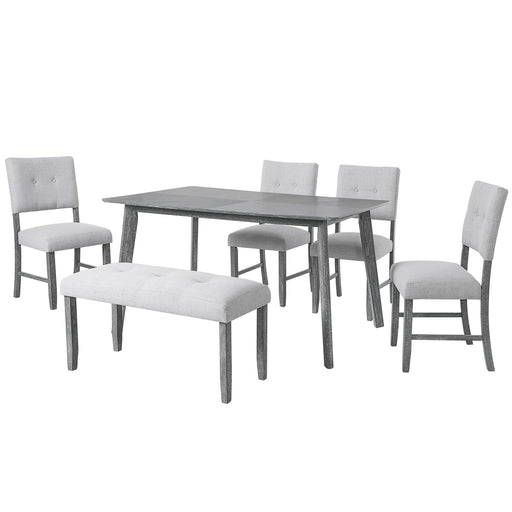 Modern Design: The TOPMAX dining set combines modern and traditional elements, featuring a rectangular table, padded chairs, and a bench with hal...