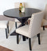 - Elegant and Cozy Atmosphere: Round table with stable cross-buck pedestal base in black finish. Chairs feature fabric upholstery with brass nailheads for a timeless look.