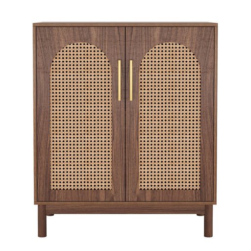 Rattan Cabinet: Features hand-woven natural rattan doors for aesthetic and practical use. Large Storage Space: Includes 2 rattan doors and adjusta...