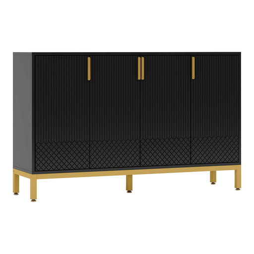 Luxury Modern Design: Sleek finish with handles and geometric striped doors for a sophisticated, high-end look Spacious Storage Solution: Four-doo...