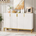 Buffet Sideboard Cabinet With Geometric Doors, Storage For Kitchen - White