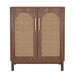 Sideboard Buffet Cabinet With Handwoven Rattan Doors (Set of 2) - Dark Brown