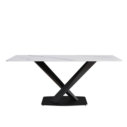 Modern Artificial Stone Straight Edge Metal X Leg Dining Table, 6 People
