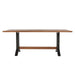 The Bellamy Dining Table combines timeless craftsmanship with modern design. Featuring a solid wood tabletop with a warm, natural finish, it showcases the unique beauty of the wood's grain. The trestle-style base, finished in a sleek dark tone, provides sturdy support and a contemporary contrast. Perfect for hosting family meals or entertaining guests, the Bellamy Dining Table brings elegance and durability to any dining space.