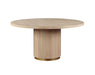 - Elevate your dining experience with the timeless beauty and exceptional craftsmanship of our Caspian Oak Finish Dining Table. At a generous 59" in width, this table offers ample space for all your dining needs while exuding an air of sophistication that will enhance any dining room. The exquisite oak veneer finish adds a touch of warmth and elegance to your dining space. Featuring a sturdy pedestal base that not only provides stability but also allows for comfortable seating arrangements. Say goodbye to awkward table legs that get in the way of your guests! The pedestal base is adorned with a striking golden iron ring, adding a touch of opulence to the table's overall design. Create lasting memories around this exquisite piece of furniture. Order now and transform your dining space into a haven of elegance and charm!