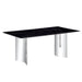 Modern Minimalist Dining Table Imitation Marble Glass With Metal Legs - Black