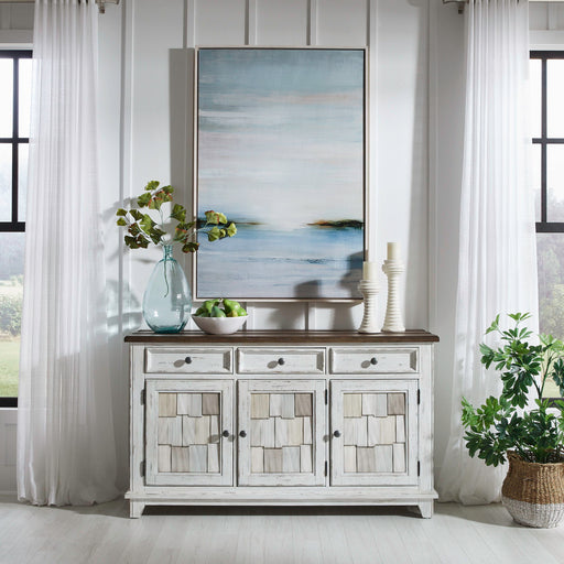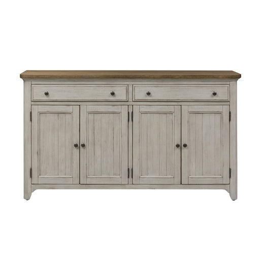 Invite cottage design into your dining room with the Summer House server. Crafted of poplar and rubberwood solids, this piece features a dove grey ...