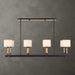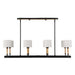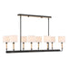 This Casual 8 Light Linear Pendant Blends Into Any Style With Classic Lines, Earthy Blond Wood Accents And A Matte Black Finish. All Topped With A White Linen Fabric Shades. 8-25 Watt Max Candelabra Sockets. Bulbs Not Included. Supplied With 15' Wire, 6-12" Stems And 2-6" Stem For Adjustable Installation.