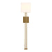 Our Refined 2 Lt. Sconce Features A Square White Hardback Fabric Shade In A Warm Brass Finish With An Overstated Architectural Tail. 2-60 Watt Max Candelabra Sockets. Bulbs Not Included.
