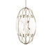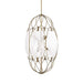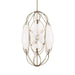 Interconnected Oval Shapes Make Up This Elongated Pendant. The Center Ovals Have Handmade Inset Swirled White Glass Panels. A Soft Gold Finish Refines This Rich Look. 6-40 Watt Max Candelabra Sockets. Designer Suggest G16.5 Bulbs. Bulbs Not Included. Supplied With 15' Wire, 3-12" Stems And 1-6" Stem For Adjustable Installation.
